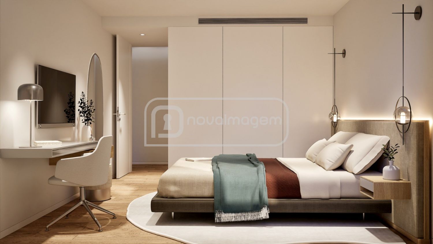 Empreendimento em construção. Com uma arquitetura circular e contemporânea, o Edifício VOLUTA destaca-se pela elegância e funcionalidade. Distribuído por três pisos, o projeto combina habitação e comércio, com 9 apartamentos T1 e T2 e uma loja com zona exterior. Um espaço pensado para quem valoriza conforto, modernidade e qualidade de vida. Estrutura: Estrutura em betão armado, paredes exteriores em bloco térmico e isolamento acústico interior. Entre frações, paredes duplas com lã mineral para máximo conforto sonoro. Zonas Comuns e Garagem: Elevador elétrico silencioso e eficiente (Classe A). Portas corta-fogo, sistemas de deteção de incêndios e monóxido de carbono, e iluminação automática com sensores de movimento. Acabamentos e Materiais: Fachada em zinco e betão à vista. Caixilharias em alumínio ou PVC com corte térmico e vidros duplos. Iluminação indireta com sancas e tetos falsos. Paredes em gesso cartonado hidrófugo e pintura lavável branca. Pavimento vinílico em imitação de madeira. Louças e bases de duche OLI, lavatórios em Solidsurface. Portas interiores até ao teto e portas de entrada de segurança. Varandas com guardas de vidro e estrutura em aço. Equipamentos: Ar condicionado embutido e bomba de calor RIELLO para AQS. Exaustão mecânica nas instalações sanitárias. Eletrodomésticos TEKA: placa, forno, micro-ondas, exaustor, máquina de lavar louça e combinado. Pré-instalação para máquina de lavar roupa. Videoporteiro e tomada para carregamento de veículo elétrico com sistema Wi-Fi. Para mais informações não hesite em contactar. Ang. Ni2113.2G