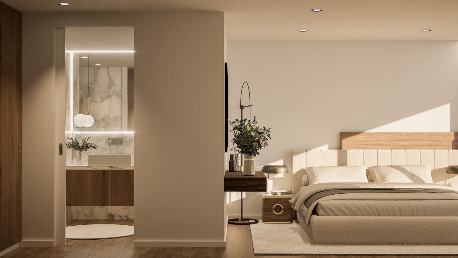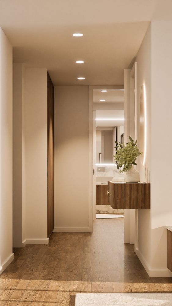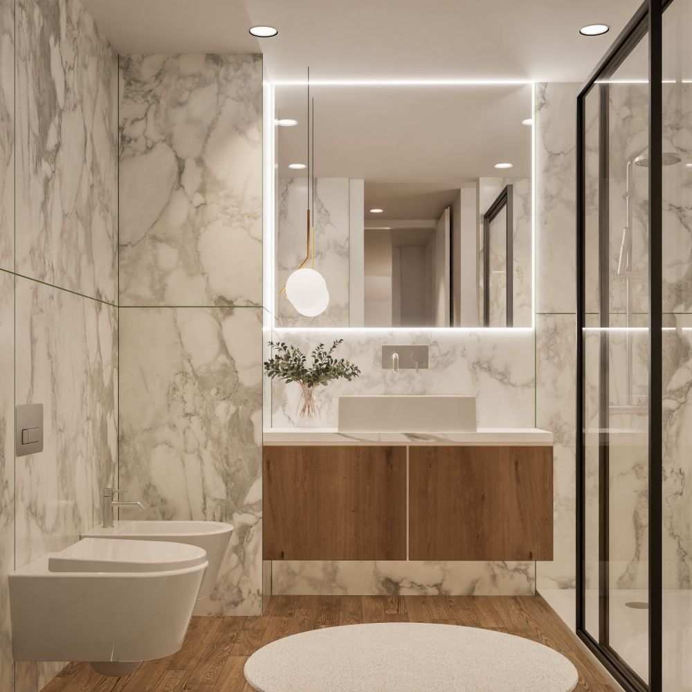 Casas de banho modernas com louças suspensas e acabamentos de design.