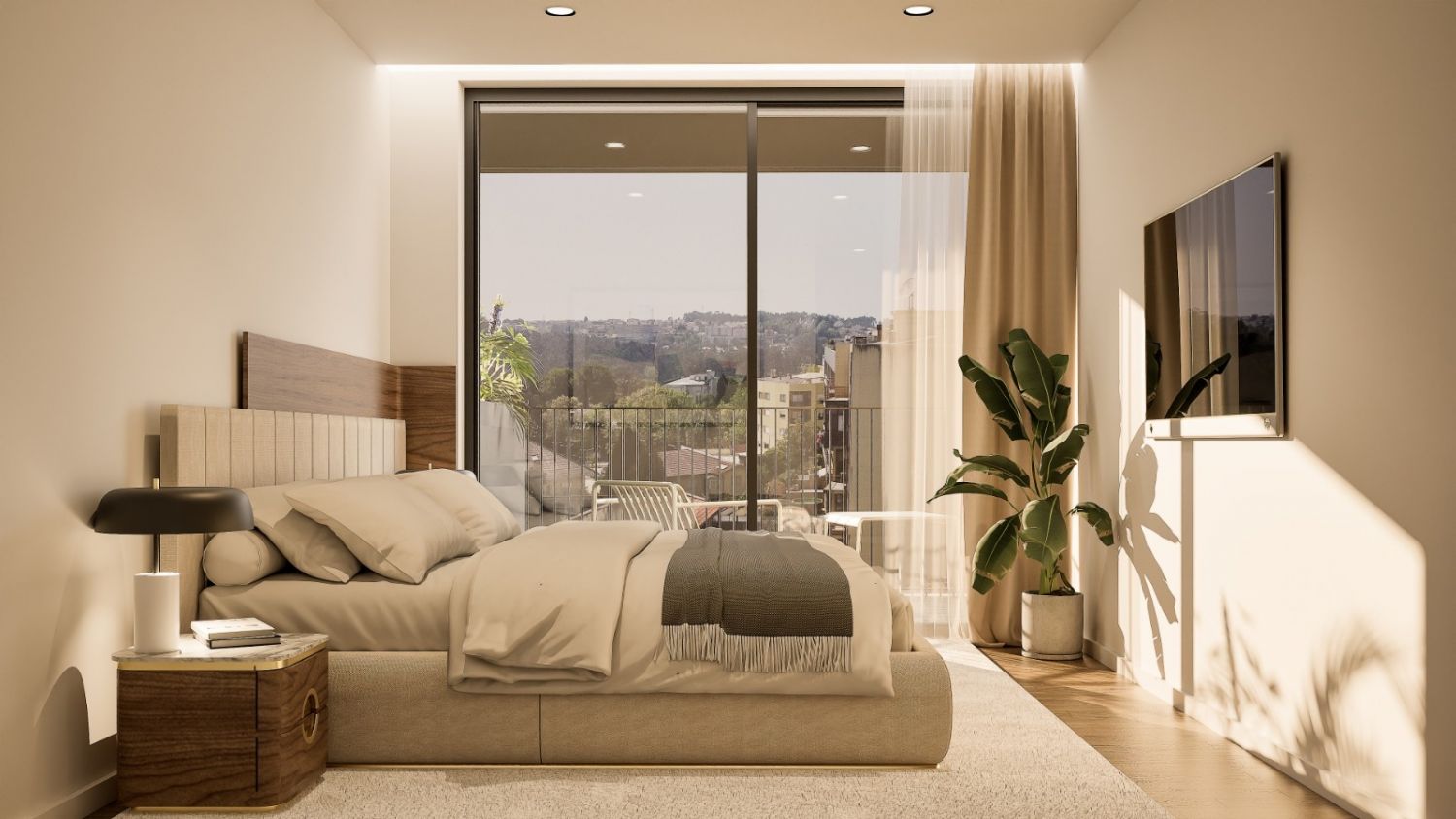 Os apartamentos dispõem de ar condicionado, bomba de calor e caixilharia em alumínio com vidros duplos.